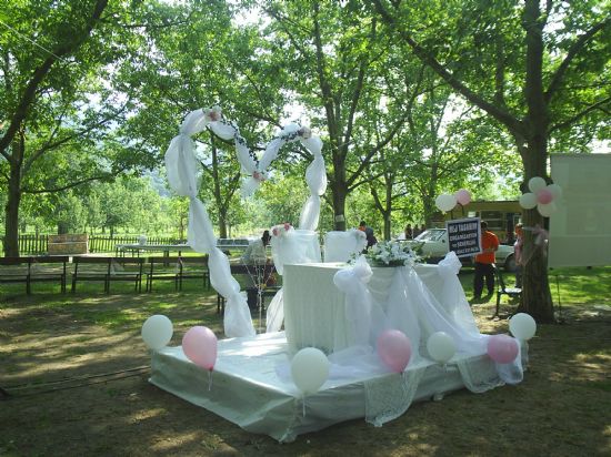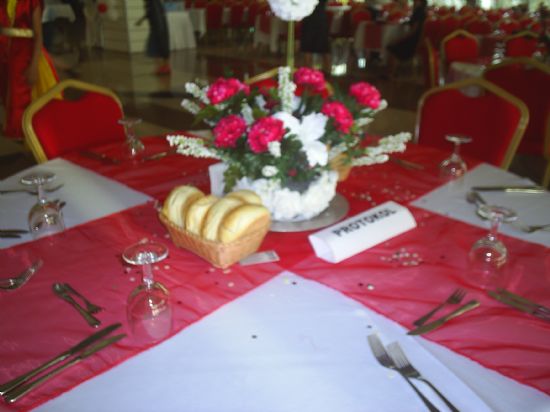 Müşteri isteğine göre kırmızı ve beyaz renklerinde çiçek ve mumlarla kombine edilmiş kına masası düzenlemesi