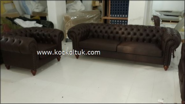 İçerik Sayfası: KAHVE RENGİ GERÇEK DERİ CHESTER KOLTUK TAKIMI