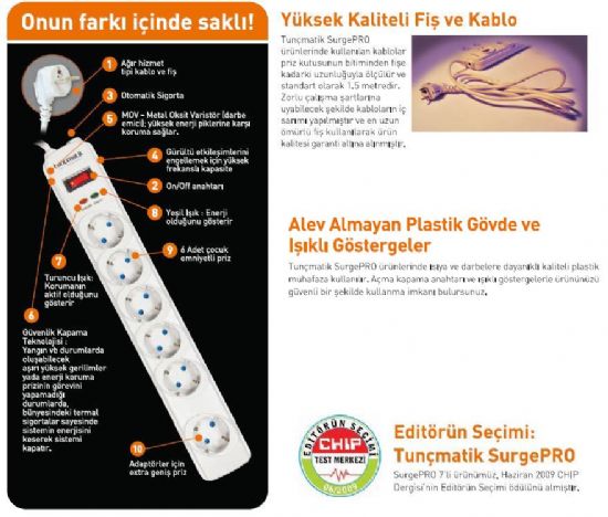 Tunçmatik Akım Korumalı Prizi 5li 238 BEYAZ . YÜKSEK KALİTEDE FİŞ VE KABLO